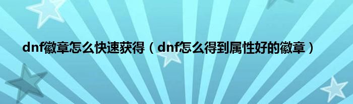 欢迎观看本篇文章,小升来为大家解答以上问题。dnf徽章怎么快速获得,dnf怎么得到属性好的徽章很多人还不知道,现在让我们一起来看看吧!