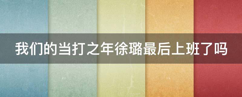 我们的当打之年徐璐最后上班了。在大结局剧情中,谷峤(徐璐饰)与郝帅(周大为饰)正式告别,开启事业狂人的人生新篇章;袁歌(陈都灵饰)与杜秉文(张雨剑饰)有情人终成眷属。《我们的当打之年》是由沈阳执导,徐璐、陈都灵领衔主演,张雨剑、郭品超、邓萃雯、周大为、易柏辰、陈昊蓝、李添诺主演的现代都市女性情感励志剧。该剧于2022年11月25日在腾讯视频、爱奇艺播出。该剧讲述了一对90后的闺蜜毕业之后选择了不同的人生道路,多年之后再次携手,于当打之年重启人生、破立前行的故事。