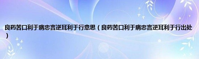 欢迎观看本篇文章,小升来为大家解答以上问题。良药苦口利于病忠言逆耳利于行意思,良药苦口利于病忠言逆耳利于行出处很多人还不知道,现在让我们一起来看看吧!