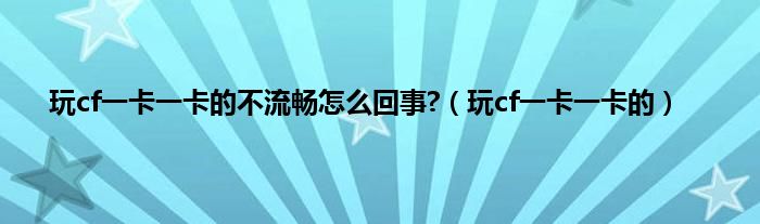 大家好,小问来为大家解答以上问题。玩cf一卡一卡的不流畅怎么回事?,玩cf一卡一卡的这个很多人还不知道,现在让我们一起来看看吧!