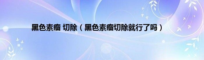 以上就是【黑色素瘤 切除,黑色素瘤切除就行了吗】相关内容。