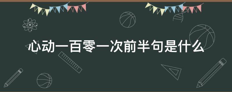 心动一百零一次没有前半句,后半句是都不如行动一次。这句话的意思是心动不如行动。句子是语言运用的基本单位,它由词、词组(短语)构成,能表达一个完整的意思,如告诉别人一件事情,提出一个问题,表示要求或者制止,表示某种感慨,表示对一段话的延续或省略。句子和句子中间有比较大停顿,它的结尾应该用上句号、问号、省略号,或感叹号。句子的结构类,即根据句子的结构特点分出的句子的类别。包括单句和复句,单句和复句又可以下分若干小类。