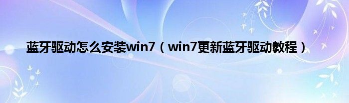 大家好,综合小编来为大家讲解下蓝牙驱动怎么安装win7,win7更新蓝牙驱动教程这个很多人还不知道,现在让我们一起来看看吧!