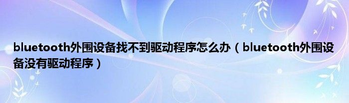大家好,综合小编来为大家讲解下bluetooth外围设备找不到驱动程序怎么办,bluetooth外围设备没有驱动程序这个很多人还不知道,现在让我们一起来看看吧!