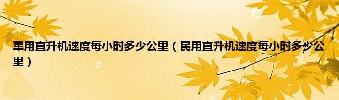 大家好,综合小编来为大家讲解下军用直升机速度每小时多少公里,民用直升机速度每小时多少公里这个很多人还不知道,现在让我们一起来看看吧!
