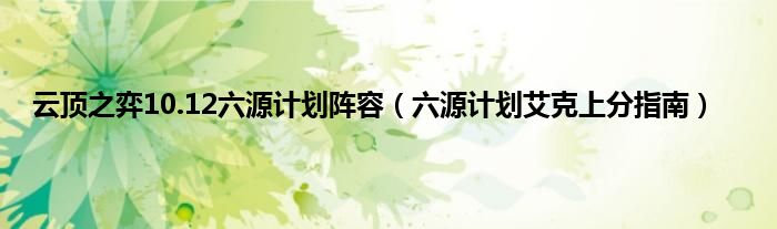 大家好,综合小编来为大家讲解下云顶之弈10.12六源计划阵容,六源计划艾克上分指南这个很多人还不知道,现在让我们一起来看看吧!