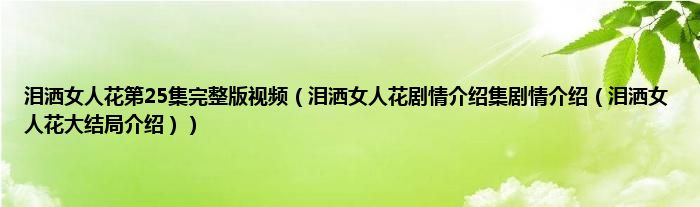 大家好,综合小编来为大家讲解下泪洒女人花第25集完整版视频,泪洒女人花剧情介绍集剧情介绍,泪洒女人花大结局介绍这个很多人还不知道,现在让我们一起来看看吧!
