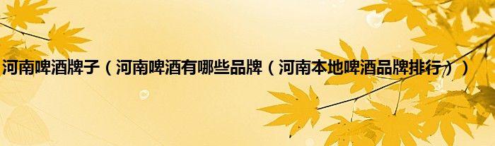 2、河南本地啤酒品牌排行。
