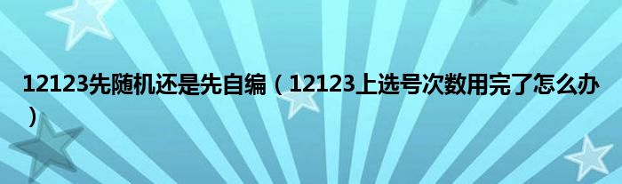 大家好,综合小编来为大家讲解下。12123先随机还是先自编,12123上选号次数用完了怎么办这个很多人还不知道,现在让我们一起来看看吧!