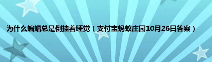 大家好,综合小编来为大家讲解下为什么蝙蝠总是倒挂着睡觉,支付宝蚂蚁庄园10月26日答案这个很多人还不知道,现在让我们一起来看看吧!