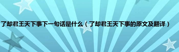 各位网友们好,我是编辑小虎,为大家解答了却君王天下事下一句话是什么,了却君王天下事的原文及翻译问题。一起往下看看