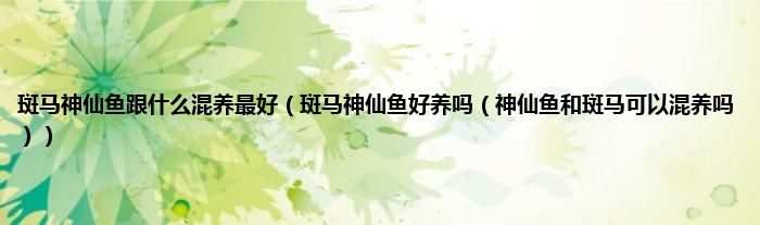 大家好,综合小编来为大家讲解下斑马神仙鱼跟什么混养最好,斑马神仙鱼好养吗,神仙鱼和斑马可以混养吗这个很多人还不知道,现在让我们一起来看看吧!