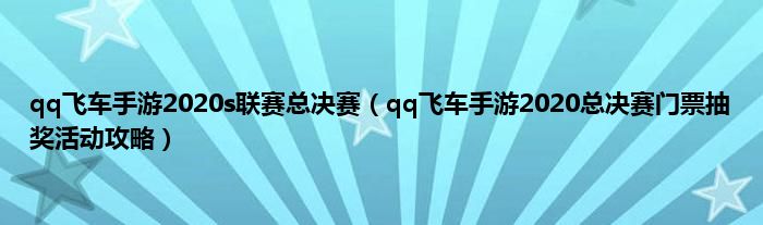 大家好,综合小编来为大家讲解下qq飞车手游2020s联赛总决赛,qq飞车手游2020总决赛门票抽奖活动攻略这个很多人还不知道,现在让我们一起来看看吧!
