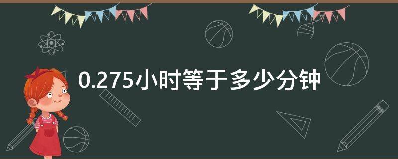 0.275小时等于16.5分钟。时间是物质的永恒运动、变化的持续性、顺序性的表现,包含时刻和时段两个概念。时间是人类用以描述物质运动过程或事件发生过程的一个参数,确定时间,是靠不受外界影响的物质周期变化的规律。以地球自转为基础的时间计量系统称为世界时系统。时、日、月、年、世纪的时间计量属天文学中的历法范畴。时间是物理学中的七个基本物理量之一,符号为t。在国际单位制(SI)中,时间的基本单位是秒,符号为s。