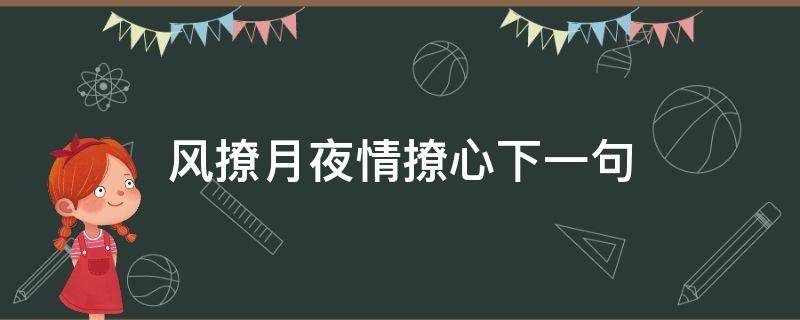 风撩月夜情撩心下一句是风吹花香满衣。夜晚,晚风轻拂,轻轻的吹动着窗帘,星空上的明月很是耀眼,那看似小巧的星星也镶嵌在旁边。在这样的夜晚,可以暂时不去想那些令人忧伤烦恼的事情,可以静静的一边品着香茶或是咖啡观赏着这夜晚的天空。句子是语言运用的基本单位,它由词、词组(短语)构成,能表达一个完整的意思,如告诉别人一件事情,提出一个问题,表示要求或者制止,表示某种感慨,表示对一段话的延续或省略。句子和句子中间有比较大停顿。它的结尾应该用上句号、问号、省略号或感叹号。为了把意思表达清楚,一般常用的句子包括两部分:一部分是句子里说的谁或什么(主语部分);另一部分是句子里说的是什么、怎么样或做什么(谓语部分)。