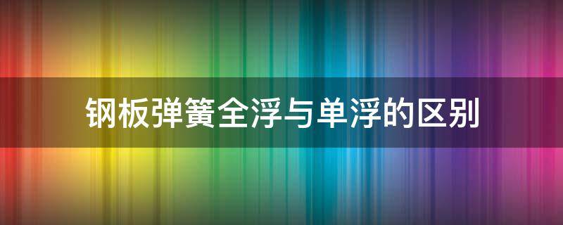最佳答案全浮指钢板弹簧两侧均可浮动,可以在水平和垂直方向上都有些微小的位移。在汽车悬挂系统中,全浮主要用于车辆的后悬挂系统,以满足车辆的行驶需求,使车轮保持接触道路的状态,增强驾驶的稳定性和舒适性。单浮指钢板弹簧只有一侧可浮动,另一侧则被固定在定位装置上。在汽车悬挂系统中,单浮主要用...