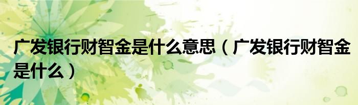 关于广发银行财智金是什么意思,广发银行财智金是什么这个很多人还不知道,今天菲菲来为大家解答以上的问题,现在让我们一起来看看吧!