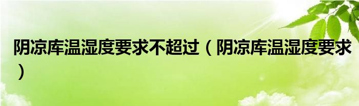 关于阴凉库温湿度要求不超过,阴凉库温湿度要求这个很多人还不知道,今天菲菲来为大家解答以上的问题,现在让我们一起来看看吧!