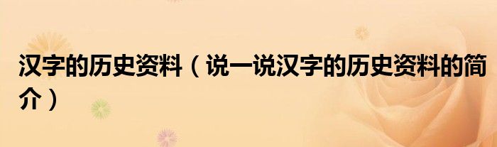 夏弥来为大家解答以下的问题,汉字的历史资料,说一说汉字的历史资料的简介,现在让我们一起来看看吧!
