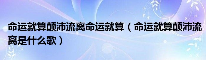 关于命运就算颠沛流离命运就算,命运就算颠沛流离是什么歌这个很多人还不知道,今天菲菲来为大家解答以上的问题,现在让我们一起来看看吧!
