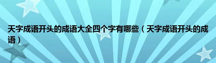 关于天字成语开头的成语大全四个字有哪些,天字成语开头的成语这个很多人还不知道,今天菲菲来为大家解答以上的问题,现在让我们一起来看看吧!