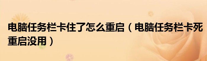 关于电脑任务栏卡住了怎么重启,电脑任务栏卡死重启没用这个很多人还不知道,今天菲菲来为大家解答以上的问题,现在让我们一起来看看吧!