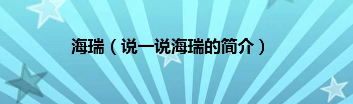 夏弥来为大家解答以下的问题,海瑞,说一说海瑞的简介,现在让我们一起来看看吧!