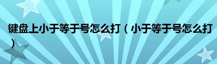 关于键盘上小于等于号怎么打,小于等于号怎么打这个很多人还不知道,今天菲菲来为大家解答以上的问题,现在让我们一起来看看吧!