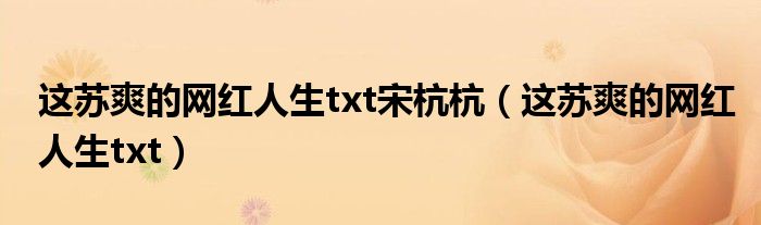 关于这苏爽的网红人生txt宋杭杭,这苏爽的网红人生txt这个很多人还不知道,今天菲菲来为大家解答以上的问题,现在让我们一起来看看吧!