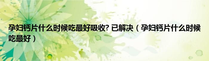 大家好,乐天来为大家解答以下的问题,孕妇钙片什么时候吃最好吸收? 已解决,孕妇钙片什么时候吃最好很多人还不知道,现在让我们一起来看看吧!