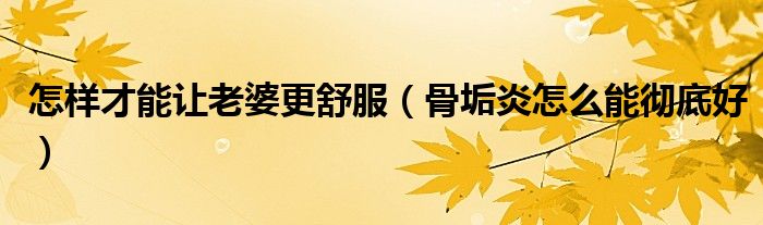 大家好,乐天来为大家解答以下的问题,怎样才能让老婆更舒服,骨垢炎怎么能彻底好很多人还不知道,现在让我们一起来看看吧!
