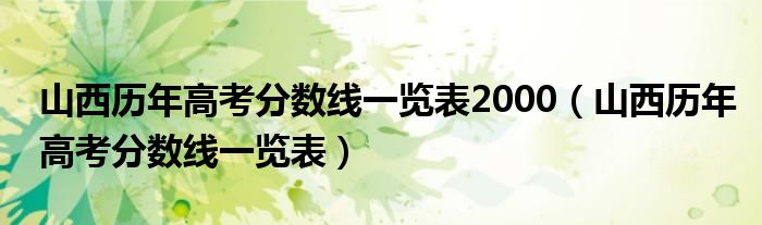 大家好,乐儿来为大家解答以下问题,山西历年高考分数线一览表2000,山西历年高考分数线一览表很多人还不知道,现在让我们一起来看看吧!