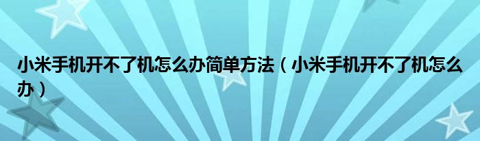 关于小米手机开不了机怎么办简单方法,小米手机开不了机怎么办这个很多人还不知道,今天菲菲来为大家解答以上的问题,现在让我们一起来看看吧!