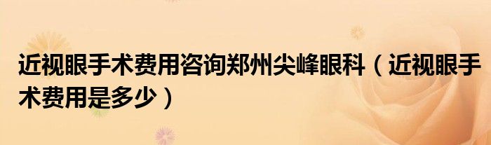 大家好,乐天来为大家解答以下的问题,近视眼手术费用咨询郑州尖峰眼科,近视眼手术费用是多少很多人还不知道,现在让我们一起来看看吧!