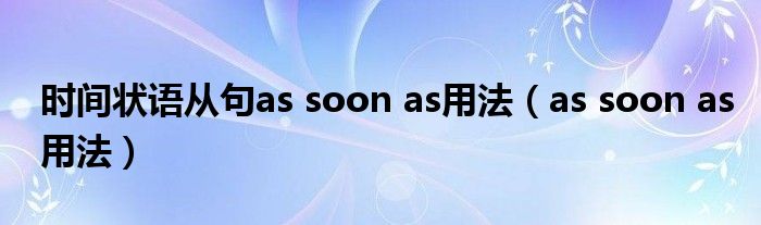 关于时间状语从句as soon as用法,as soon as用法这个很多人还不知道,今天菲菲来为大家解答以上的问题,现在让我们一起来看看吧!