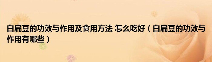 大家好,乐天来为大家解答以下的问题,白扁豆的功效与作用及食用方法 怎么吃好,白扁豆的功效与作用有哪些很多人还不知道,现在让我们一起来看看吧!