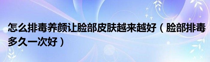 大家好,乐天来为大家解答以下的问题,怎么排毒养颜让脸部皮肤越来越好,脸部排毒多久一次好很多人还不知道,现在让我们一起来看看吧!
