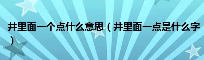 关于井里面一个点什么意思,井里面一点是什么字这个很多人还不知道,今天菲菲来为大家解答以上的问题,现在让我们一起来看看吧!