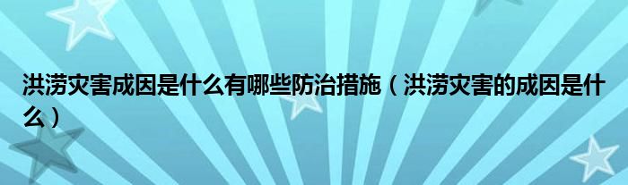 大家好,乐儿来为大家解答以下问题,洪涝灾害成因是什么有哪些防治措施,洪涝灾害的成因是什么很多人还不知道,现在让我们一起来看看吧!