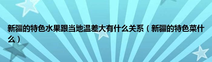 关于新疆的特色水果跟当地温差大有什么关系,新疆的特色菜什么这个很多人还不知道,今天菲菲来为大家解答以上的问题,现在让我们一起来看看吧!