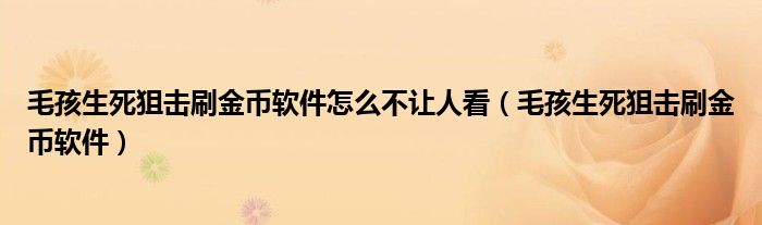 毛孩生死狙击刷金币软件怎么不让人看(毛孩生死狙击刷金币软件)