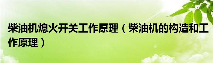 大家好,乐儿来为大家解答以下问题,柴油机熄火开关工作原理,柴油机的构造和工作原理很多人还不知道,现在让我们一起来看看吧!
