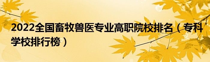 一、2022全国畜牧兽医专业高职院校排名