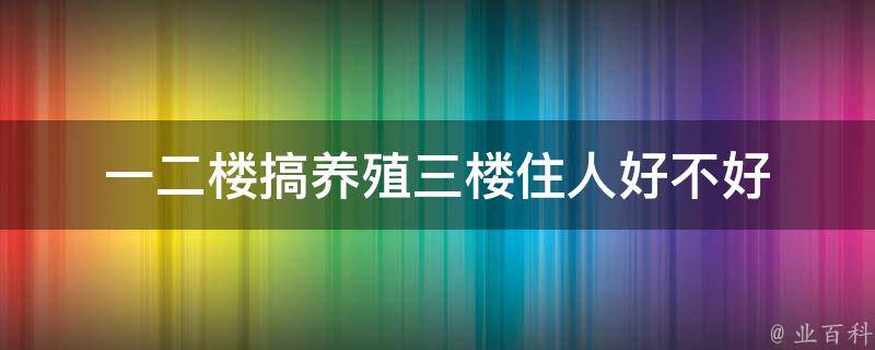 一二楼搞养殖三楼住人不好。养殖活动可能会产生噪音和气味,对三楼居住者造成干扰和不便。此外,养殖活动可能会产生废水、粪便等污染物,会对居住环境和卫生的不利影响。养殖活动需要妥善管理,应注意卫生和安全措施,以防止疾病传播或事故发生。