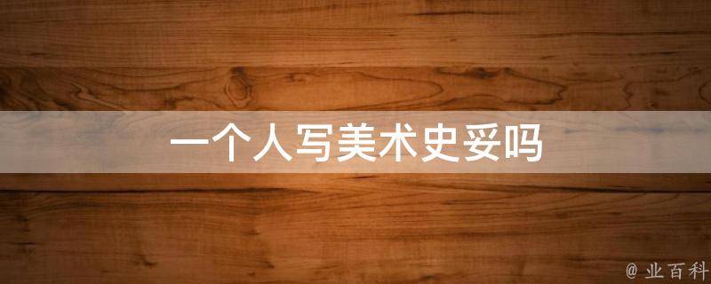 一个人写美术史妥,许多学者和专业人士都是单独完成了他们的美术史研究和著作。虽然美术史是一门广泛而深入的学科,它涵盖了众多的艺术家、艺术运动、时期和地区等内容,但一个人可以通过自主研究、阅读和调查,构建一个有关美术史的全面而具体的叙述。
