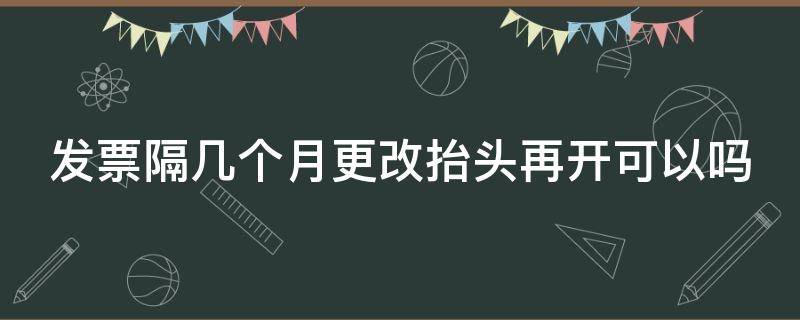 发票隔几个月更改抬头再开不可以,因为更改发票抬头并重新开具需要在一定时间范围内完成,过了期限无法进行修改或重新开具。并且更改发票抬头涉及到纳税人身份和税务登记的修改,需要更新相关纳税人信息,并向税务部门提交相关申请或文件。