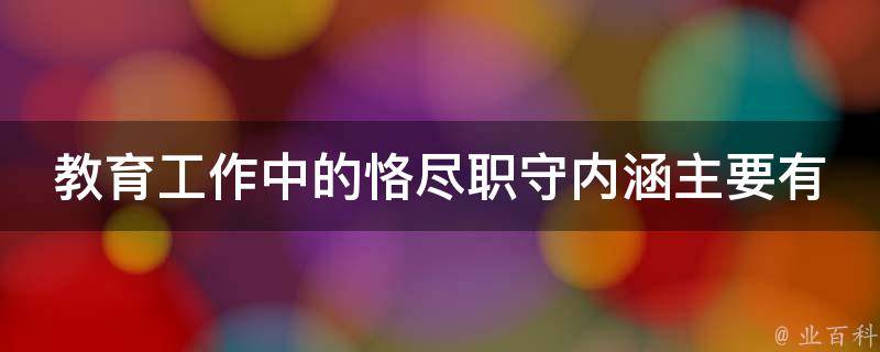 教育工作中的恪尽职守内涵主要有:从职业规范上说,要求教师按照教育事业对教师的要求尽职尽责;从教育效果上说,要求教师不能误人子弟,要尽全力取得最佳的教育效果。恪尽职守实际上就是老师的一种工作责任和纪律的要求。