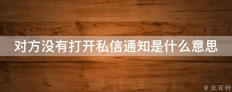 对方没有打开私信通知的意思是对方在设置里面关闭了私信这个功能,用户发的所有消息,对方都接收不到。在这种情况下,你可以选择其他的联系方式进行沟通,例如通过社交媒体平台、电子邮件或其他可用的方式与对方取得联系。