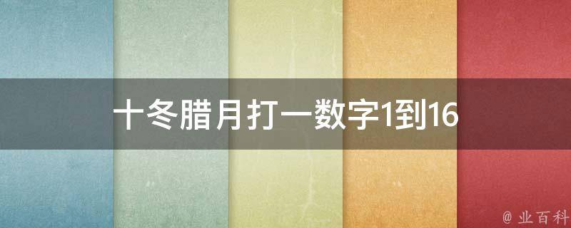 十冬腊月打一数字1到16是12。因为十冬腊月是指农历十二月,岁末十二月有多种称呼,其中最为熟知的当属腊月这一别称。猜数字是一种古老的密码破译类益智类小游戏,起源于20世纪中期,一般由两个人或多人玩,也可以由一个人和电脑玩。