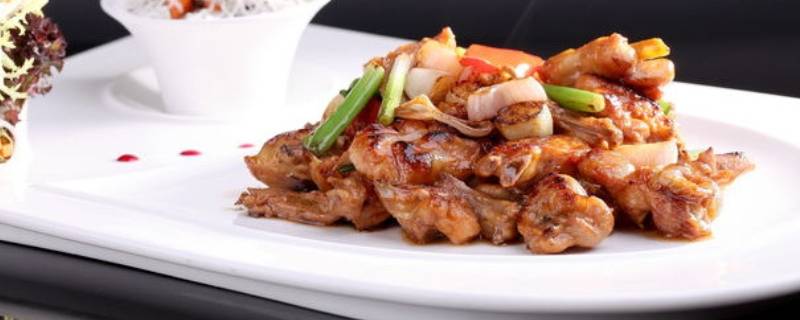 4、用中小火将鸡肉烧干,蒸发水分。